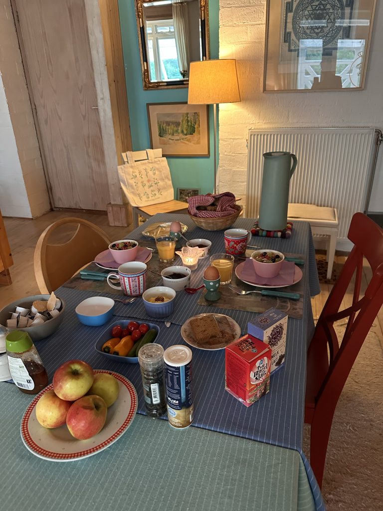 Die kleine unscheinbare Unterkunft entpuppt sich als einen wahren Glücksgriff. Liebevoll gedeckter Tisch lenkt uns von dem miesen Wetter ab. Zurzeit regnet es in Intervallen … das auch wirklich stark.