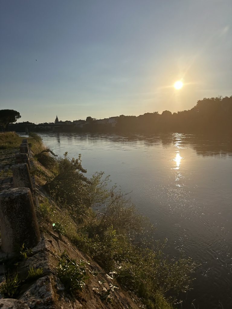 Nach einem „gemütlichen“ Frühstück wurde das Rad bepackt und es ging gegen 11:30h los. Langsam durch den Ort, nochmal an die Bucht und dann in Richtung Biarritz, unserem heutigen Ziel. Die Tour führte durch schöne Natur und an einem kleinen Fluss entlang, wobei wir beide an den Amazons denken mussten.