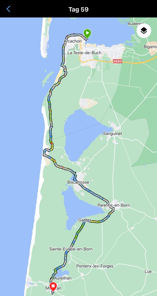 Unsere heutige Tour ist dann entsprechend „kurz“ geworden. Biarritz anschauen war die kurze Strecke wert. Ausserdem ist es erst einmal für längere Zeit die letzte Nacht in Frankreich. Morgen werden wir die Spanische Grenze überqueren 😎