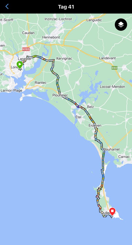 Angekommen in unserer heutigen Unterkunft an der Südspitze der Halbinsel Quiberon, kann ich die heutige Tour mit vielen Worten und Eindrücken beschreiben.