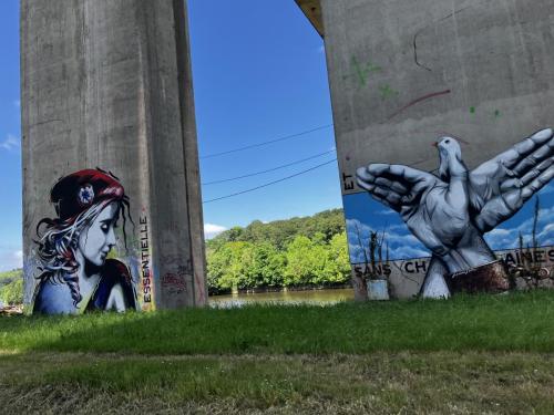 Den ersten Halt haben wir in Surzur gemacht, da mir der Duft von einer Boulangerie in die Nase stieg und wir noch nicht gefrühstückt hatten. Es gab ein lecker belegtes Sandwich, Croissants und andere kleine Leckereien. Auf einer Bank (vor einer Kirche im Zentrum), um die eine Art Kreisverkehr verlief, saßen wir und haben uns amüsiert. Da zum Teil mehrfach dieselben Autos herumfuhren. Wir mussten beide lachen und fühlten uns wie in einem Peter Sellers Film …