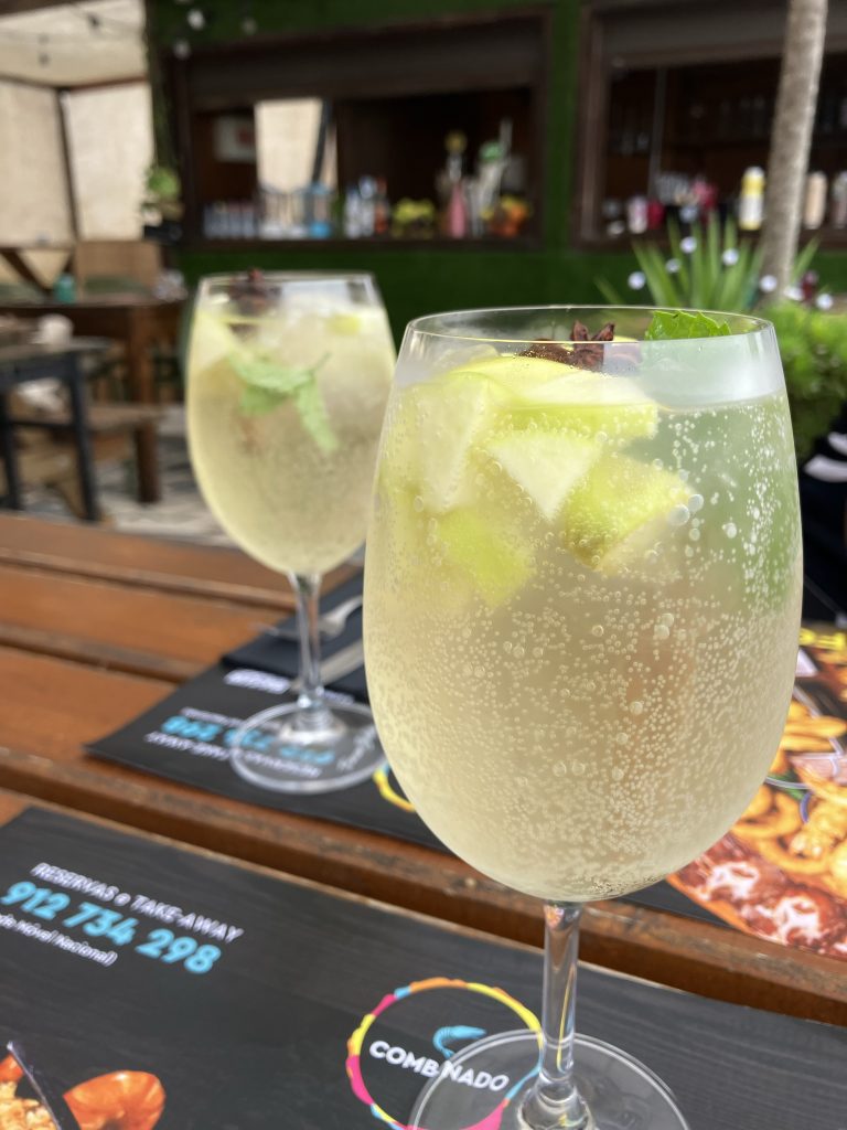 Ach ja, ein leckeres Essen (gegrillten Lachs mit Gemüse und Kartoffeln haben wir uns geteilt) und Sangria zum Abschluss des Tages gab es auch noch 🤗