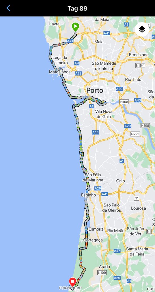 Da es mit Strand und Hotel/Unterkunftfinden nicht so leicht wird wie gestern … fahren wir in Richtung Porto Flughafen. Dort rundherum ist die Hoteldichte höher 🤗