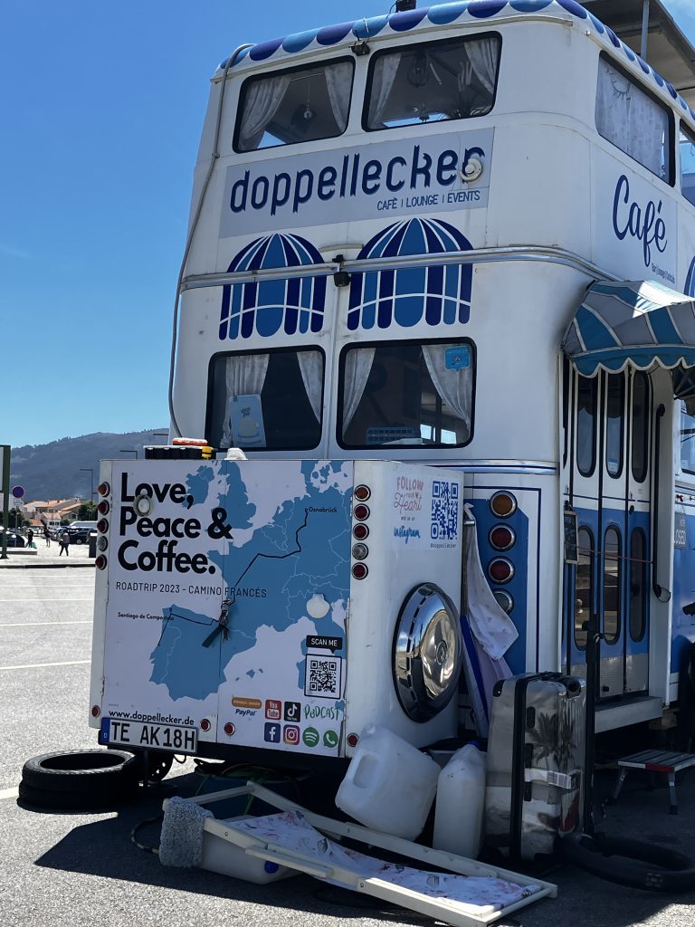 In Pontevedra eine längere Pause. Da gab es zu den Kaltgetränken auch gleich wieder leckere herzhafte Häppchen gereicht, Brot mit Olivenöl, Knoblauch und Petersilie und Schinken. Zu meinem extra heißen Kaffee gab es Schokokuchen und eine Art Brioche. Zu liebenswert. 🫶