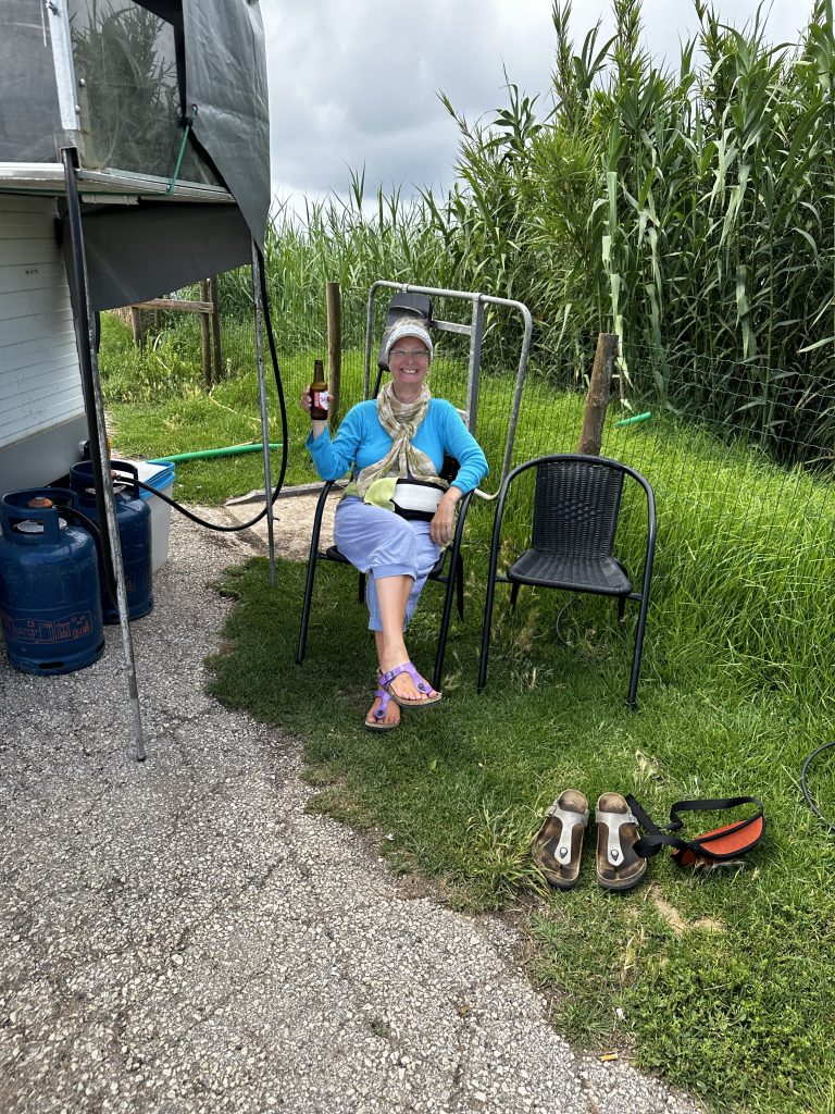 Mal wieder viele Kilometer später über Kopfsteinpflaster und an Gemüseanbau vorbei, eine Pause zur Stärkung mit etwas zu essen und 🍻