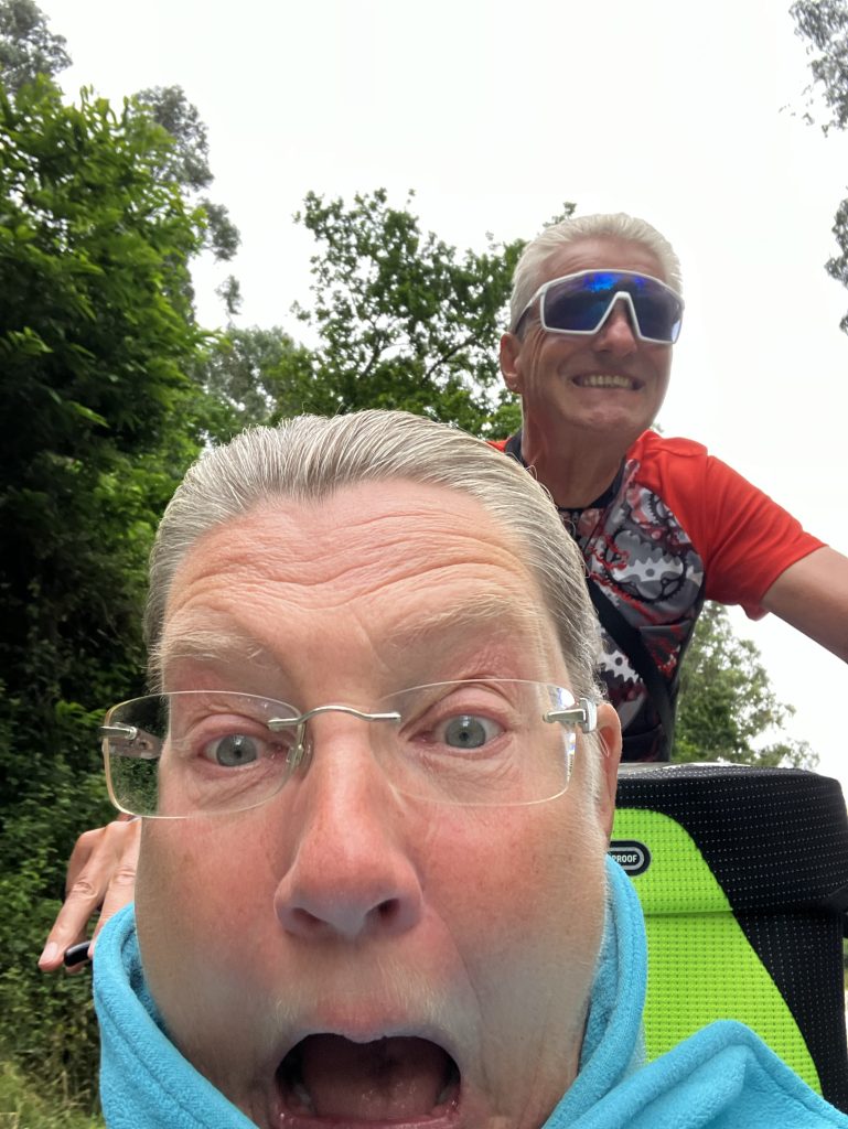 Nach einer rasanten Abfahrt mit über 60km/h die Serpentinen runter hätten wir fast noch ein paar Rennradfahrer überholt, wenn diese nicht vorher abgefahren wären. Das war vielleicht ein „Hallo“ …. sie haben sich mehrfach ungläubig umgedreht 🤗
