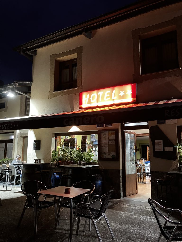 Lecker typische „Hausmannskost“: Suppe mit Kartoffeln, Blutwurst, Chorizo, Speck und Erbsen und eine Nudelportion mit Thunfisch und Tomatensoße für Michaela als „Vorspeise“ und Hauptgericht vier Stücke mariniertes Schweinefilet mit Kartoffelecken. Dazu eine Flasche Wein und Wasser und anschließendem Kaffee -> für 30€! 😳