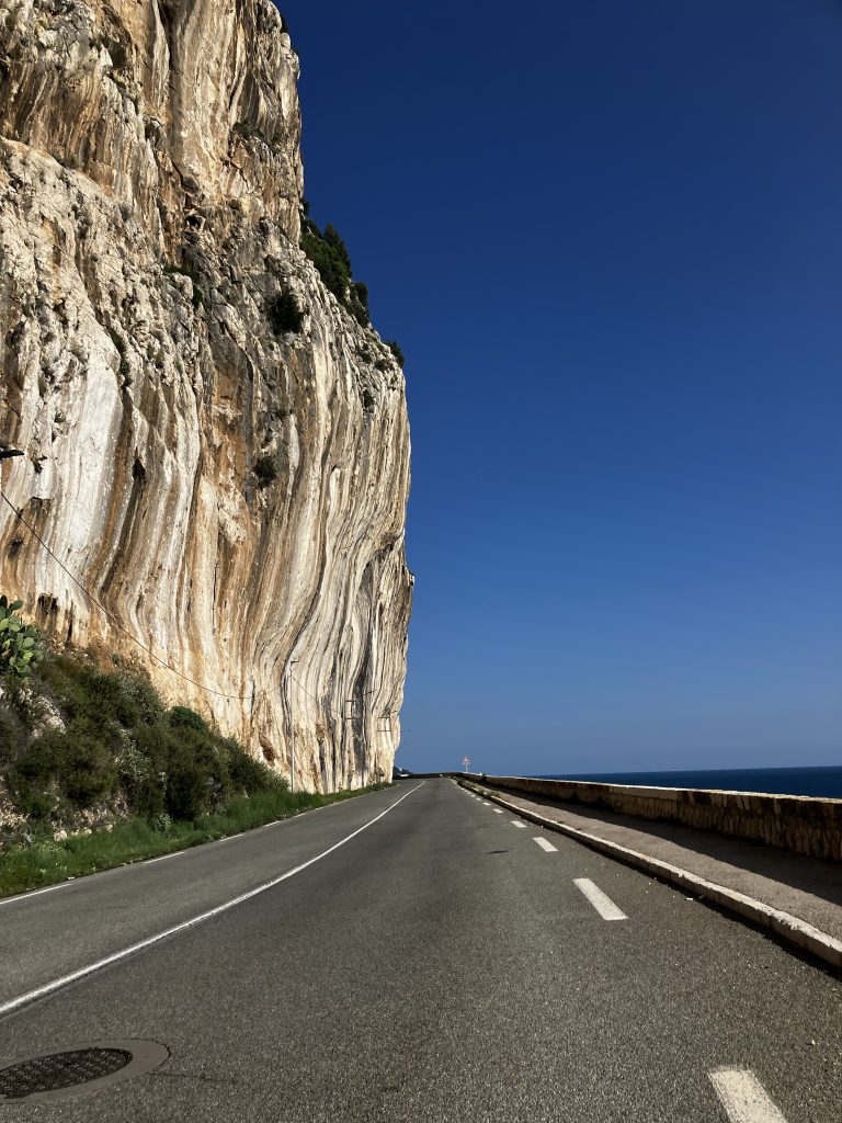 Vor Monaco wurde es etwas bergiger. An einem kleinen Strassenimbiss haben wir eine weitere Pause mit einer Kleinigkeit zu essen gemacht. Nur noch wenige Kilometer bis Monaco. Der Autoverkehr hat zugenommen.