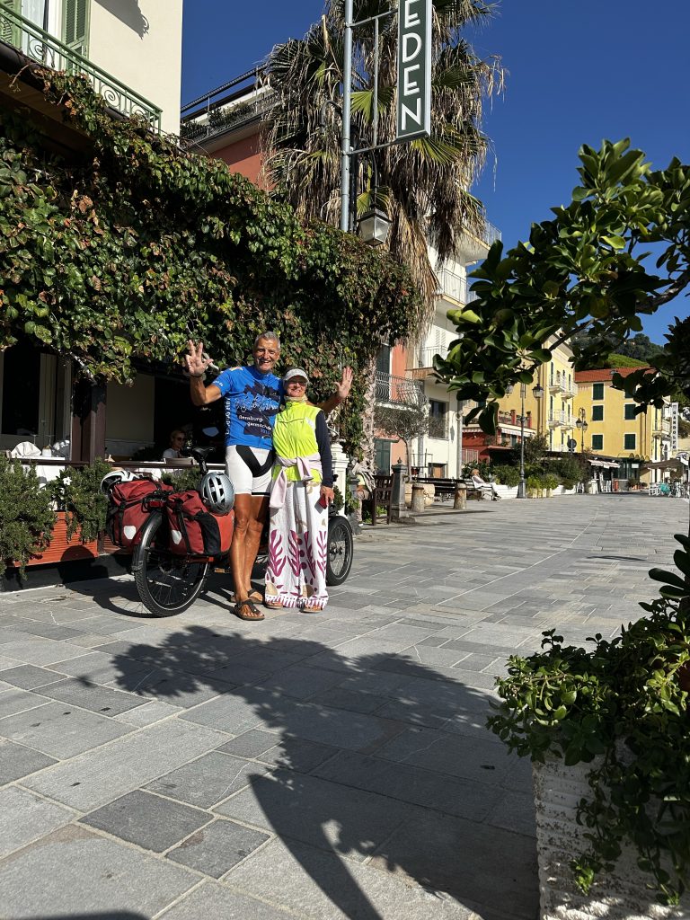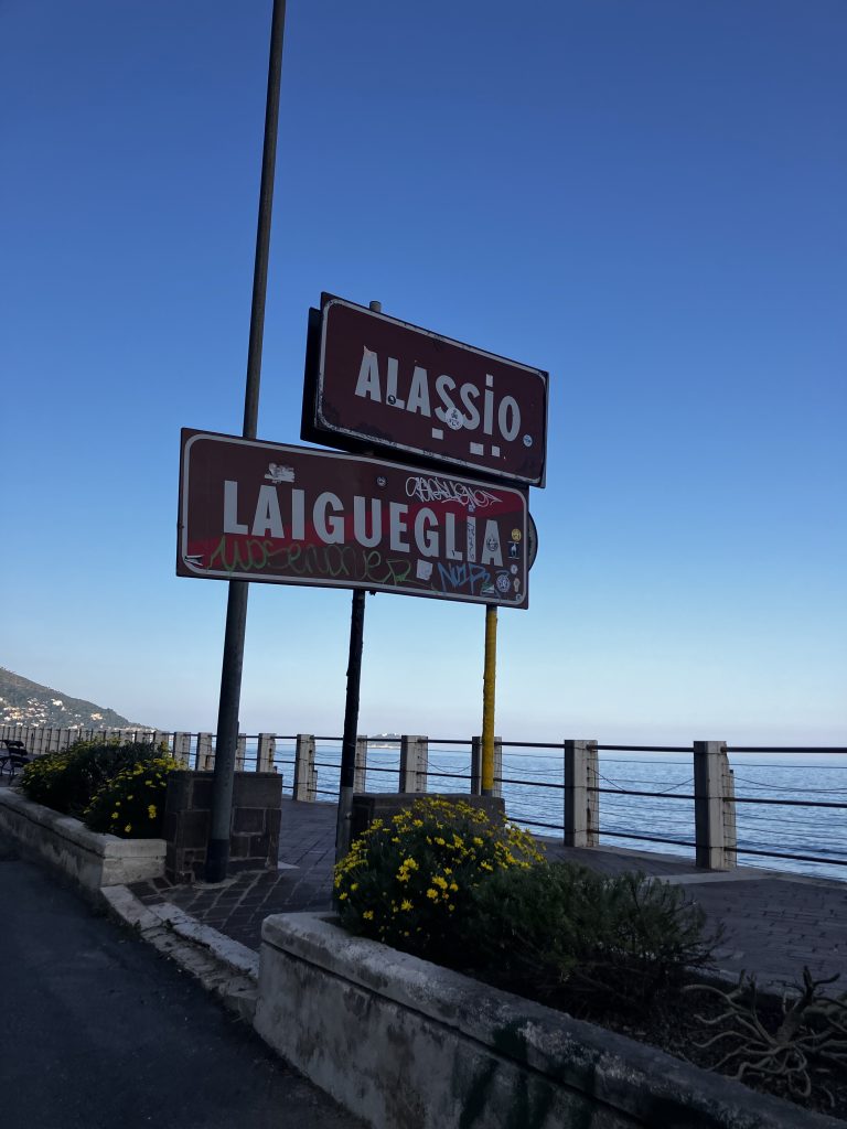 In Alassio ist das Tagesziel erreicht. Beim Bier haben wir uns eine Unterkunft ausgesucht.