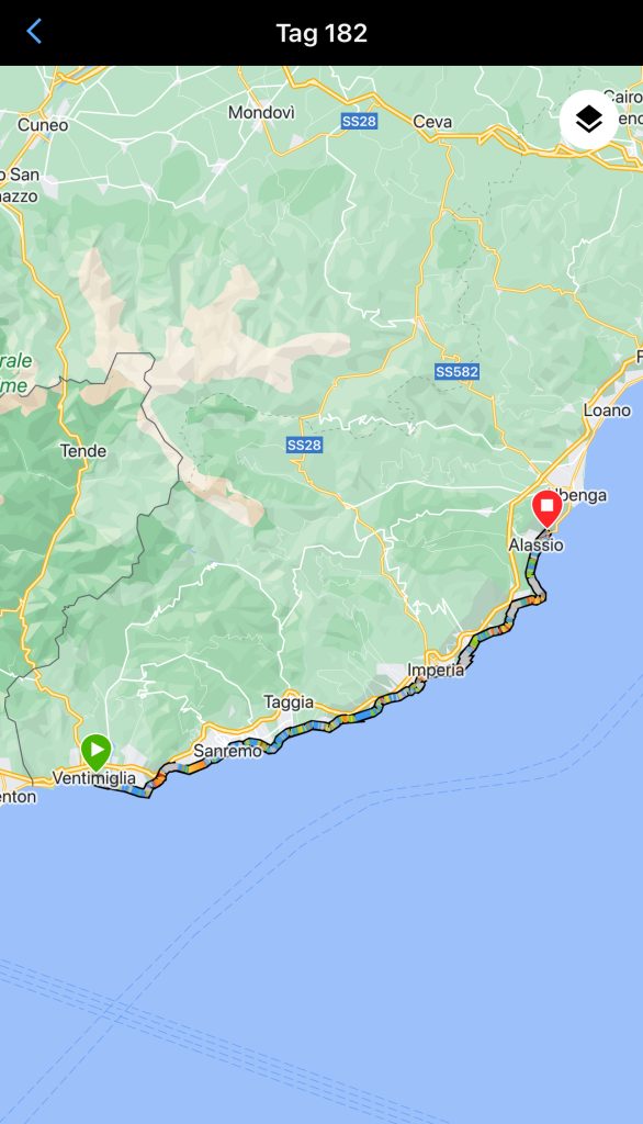 Leider war die Strecke in Imperia zu Ende und wir mussten wieder in den normalen Verkehr.