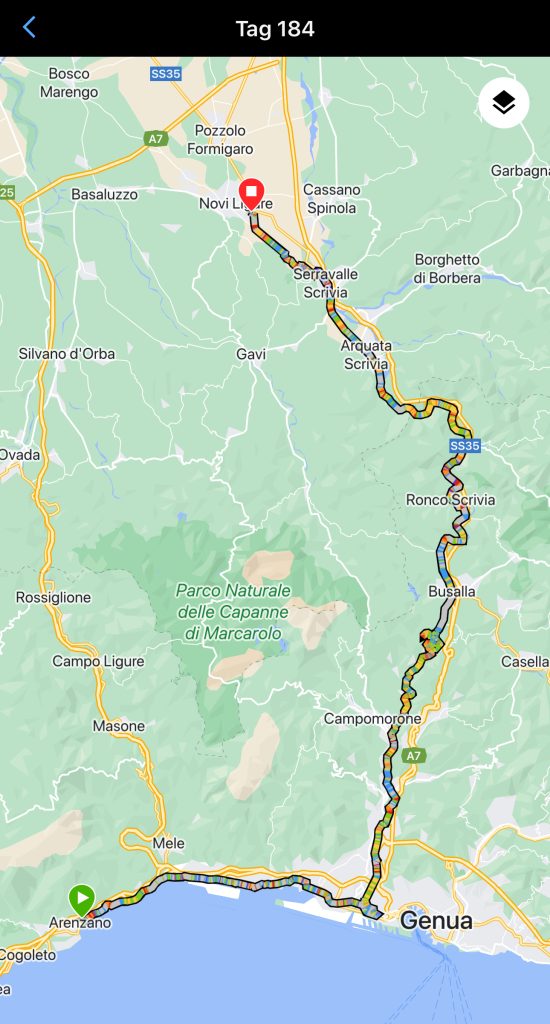 Die Luft war grottig schlecht. Wir haben fast eine Stunde durch Genua gebraucht. Das war genug schlechte Luft für eine ganze Woche 😶🌫️