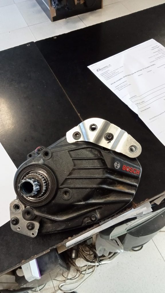 Kein gutes Zeichen. Das war eine Schraube von zweien, die ein Adapterblech auf der rechten Seite am Motor festhalten soll. Tja 😌 das ist schon ein schlimmer Fall. Wegen Garantie und dem Zustand, dass es eigentlich vor Ort irreparabel ist, stehen wir jetzt ohne Rad da.